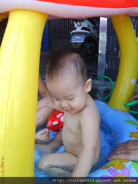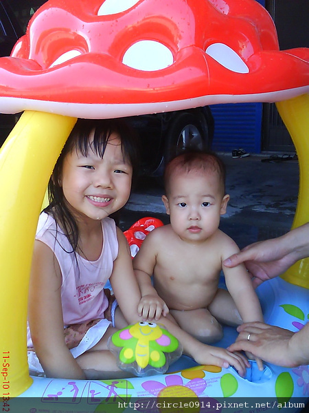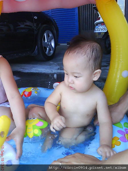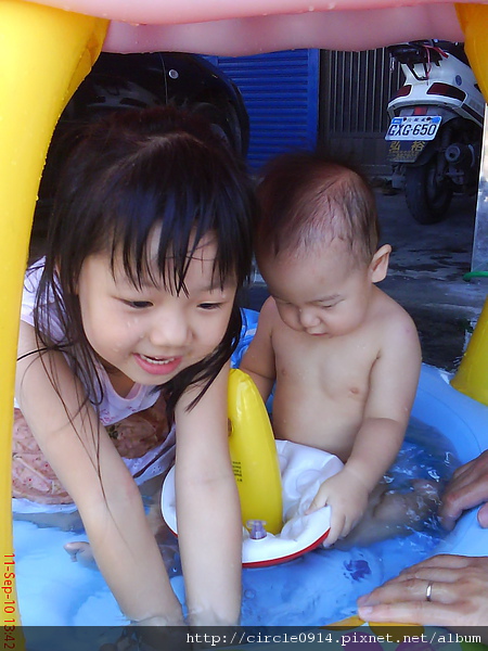 上週回宜蘭時讓恩恩與堂姐一起在小泳池裡玩水~